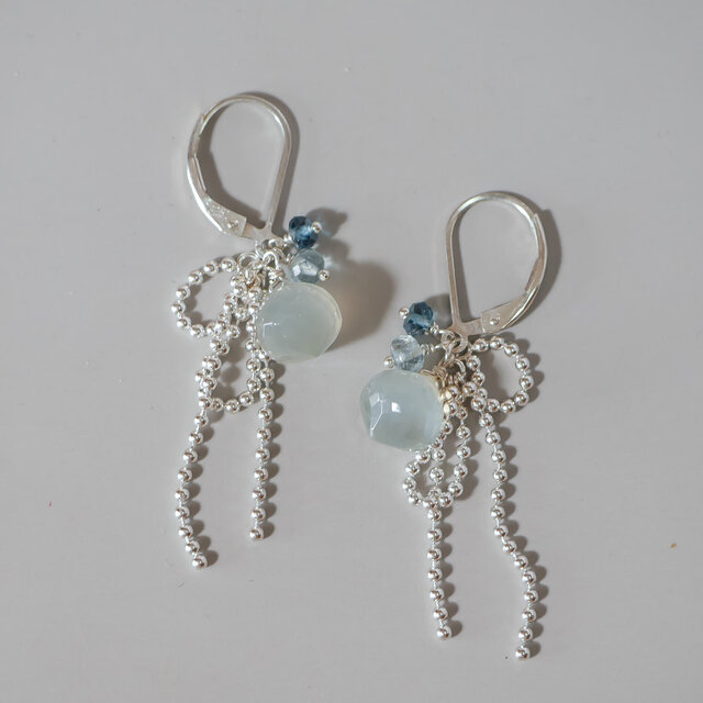 Silver925 極上カット グレームーンストーンのリボンピアス[1088GY]