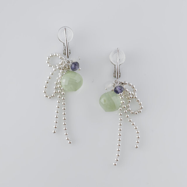Silver925 極上カット プレナイトのリボンソフトタッチイヤリング[1088E_GR]