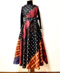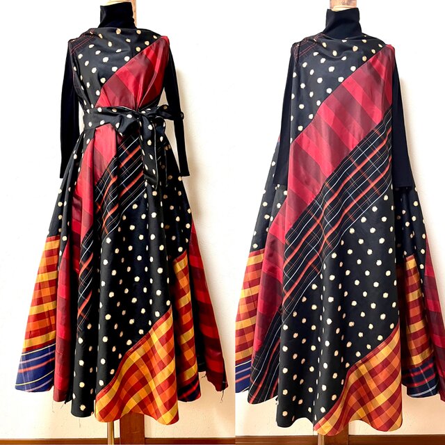 バイヤス地の目で仕立てたフレアー分量たっぷり(3m以上)のワンピースです。