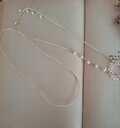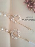 淡水パールで編んだ小さな円環と、