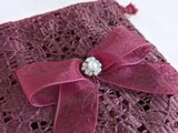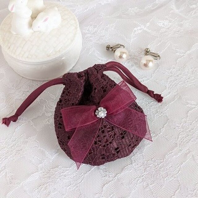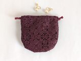 落ち着いたワインレッドのレースを使用した、上品なミニ巾着です。