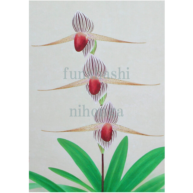 原画は日本画で描き日本蘭協会誌第40巻 (1997年12月刊) の表紙を飾らせていただきました。