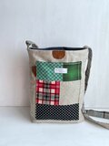 ショルダー部分は 表側はネルのチェック柄×裏側は麻で