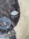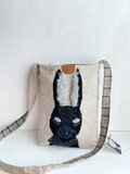 麻の生地に黒のジャガードでうさぎをパッチワークしました。