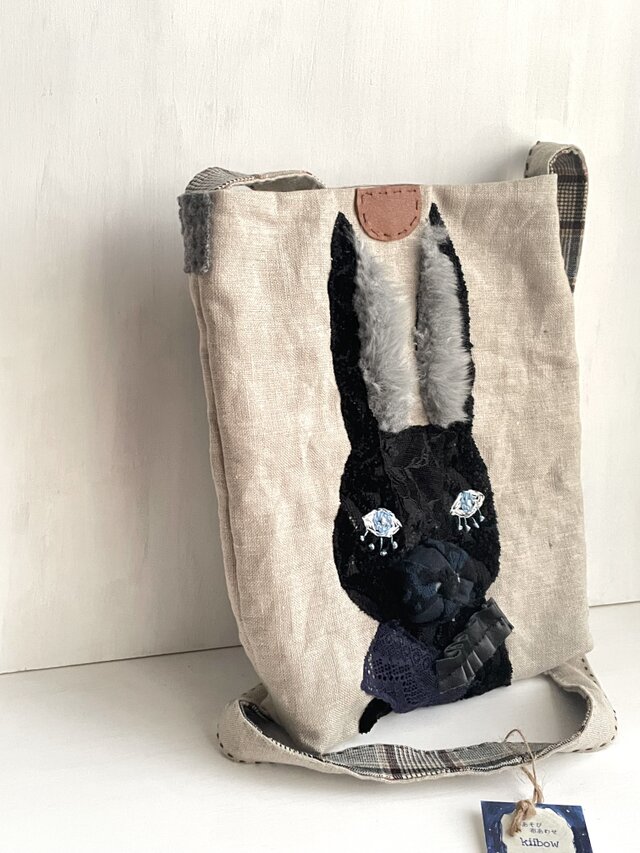 パッチワークうさぎショルダーバッグ/麻