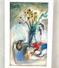 額は自作です。自分の絵にはシンプルな額が似合うと思って、いつも市販の木を切ってペンキを塗って作っています。手作りゆえの良さも至らないところもありますが、どうぞご理解ください。もし額は無用、絵だけ購入したいという方はご連絡ください。