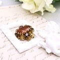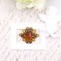 フランスで買い付けた、アンバーカラーのガラスストーンを主役にしたヴィンテージブローチです。