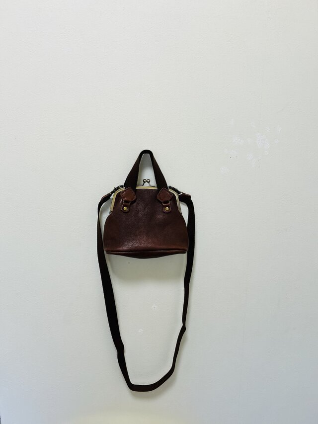 姫路レザー丸型がま口2wayポシェット◆焦げ茶 一点終了商品とっても素敵なバックをありがとうございました。 大切に使わせて頂きます。