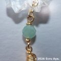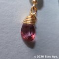 この仔をワイヤーで留める時に裏を通るようにチェーンを下げ、春に嬉しいエメラルドのラウンドカットを下げ、その下にはピンクトパーズのペアシェイプファセットカットを下げました