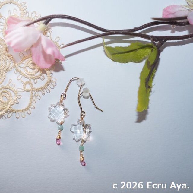 #Ecru #天然石 #イヤリング #ピアス #クリスタル #エメラルド #ピンクトパーズ #春 #桜 #Ecru_春 #Ecru_新作