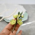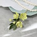 桜の花びらの淡いピンク色と違うちょっと珍しい黄緑色のうこん桜を布花のコサージュに仕立てました。