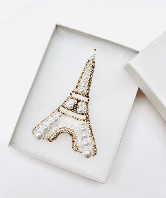 パリの象徴であるエッフェル塔をモチーフに制作したビーズ刺繍ブローチです。