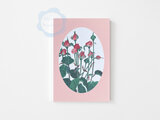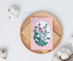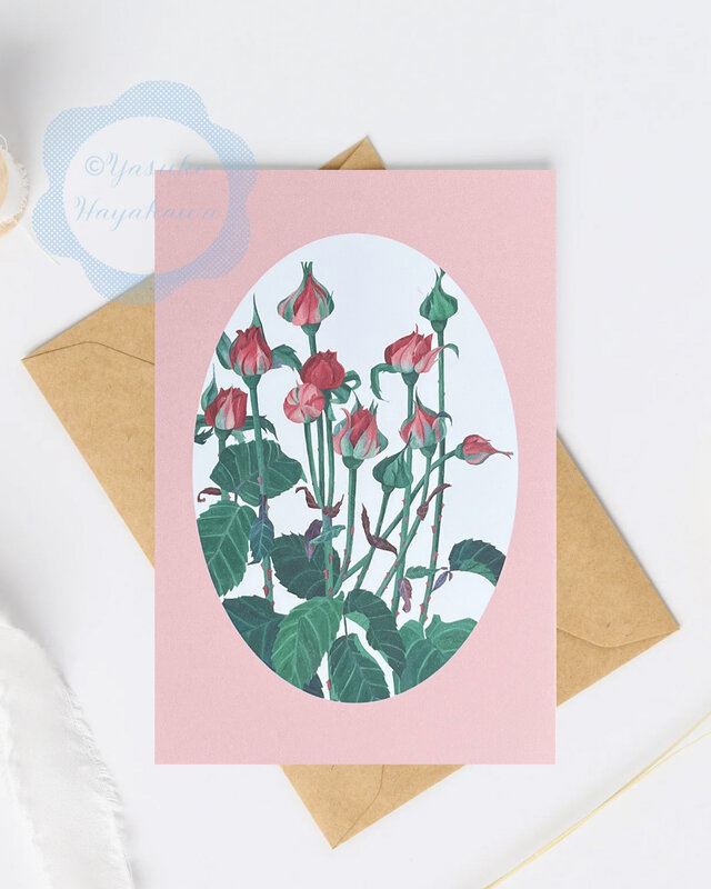 ローズピンクの薔薇の蕾の水彩画でボタニカルカードを作りました