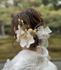 お手持ちの髪飾りにプラスしてボリュームアップしたり、散らしてパールやリボンと合わせたりとアレンジは自由自在です。