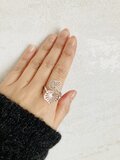2枚の花びらのようなモチーフが指先にそっと寄り添い、手元に柔らかな輝きを添えてくれます。