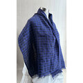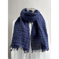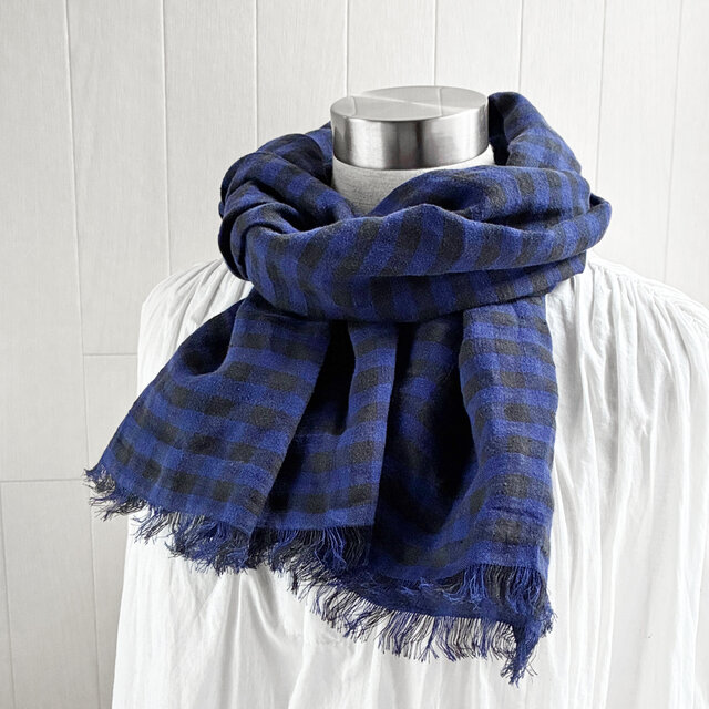秋冬 150 短めイタリアンリネンのストール ギンガムチェック ブルー×黒
