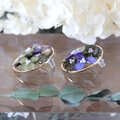 30mmのラウンドゴールドのパーツの内側にアジサイを配置し