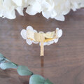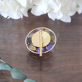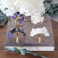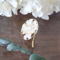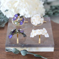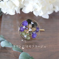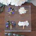 30mmのラウンドゴールドのパーツの内側にアジサイを配置し