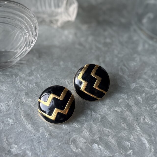 PM66-【 Monet 】モネ・ヴィンテージピアス 1980〜90's Black Enamel Chevron
