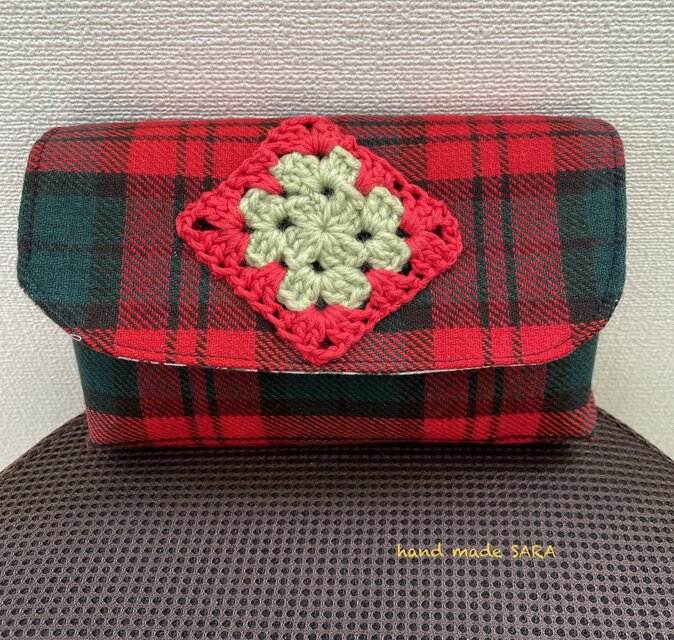 今回は素材をカジュアルな物に変え、同系色のモチーフをワッペンのように使った可愛いポーチです♪