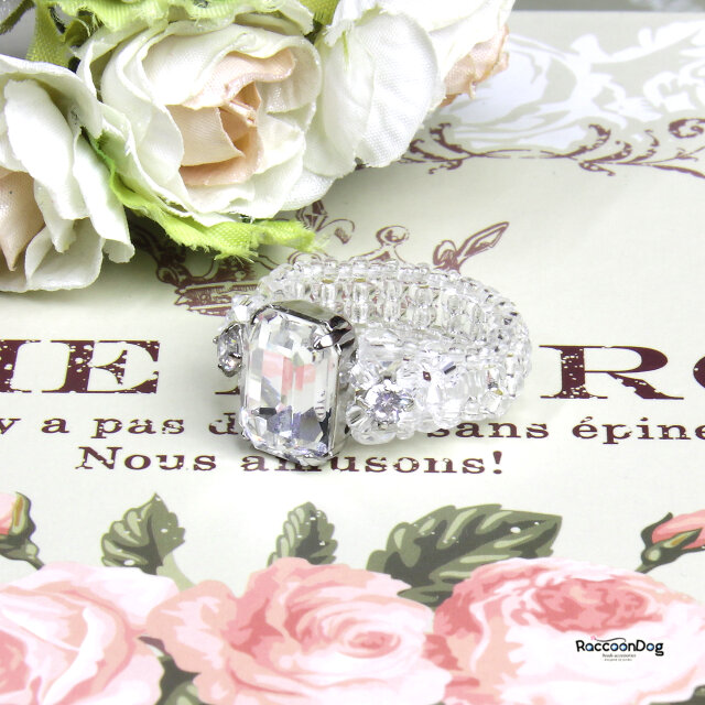 (新作)スワロとジルコニアのアイスリング〔スワロ/ジルコニア ビーズリング〕《ビーズアクセサリー》