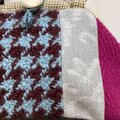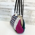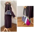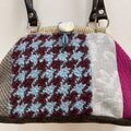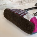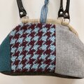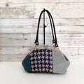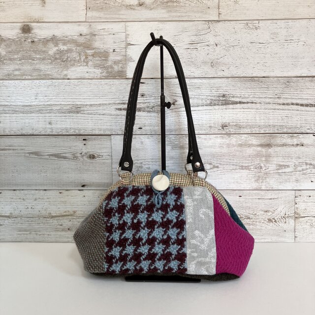 千鳥格子はボリュームのある織地、ピンクやグリーンのウールを使いカラフルなバッグになりました。
