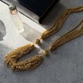 丁寧に編み込まれたチェーンの束と、高級感のあるクラスプ使い、フルーテッド・ビーズがアクセントとなったクラシックで華やかなデザイン。