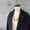 長さはマチネネックレスで、タートルネックや開いた襟元にもバランス良く収まり、また、ジャケットスタイル、カジュアルなトップスなどに合わせて、一気に個性を発揮させます。