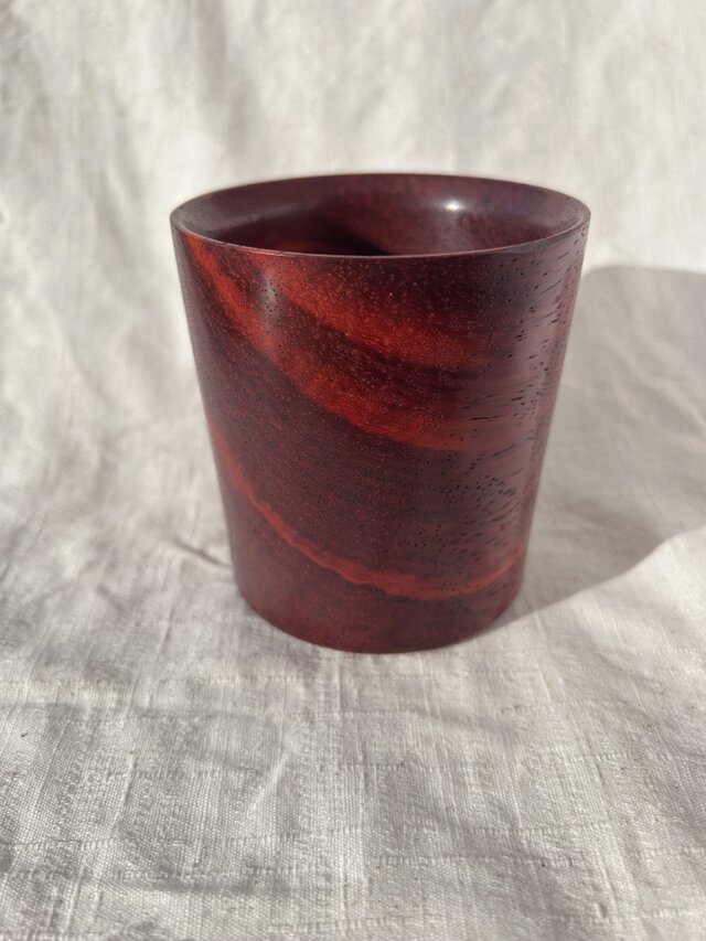 このカップは、ブビンガ(熱帯アフリカ産広葉樹)を使用しておりワシントン条約の附属書に登録されている為、現在の日本では手に入れること難しくなってきているそうです。