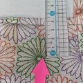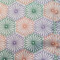 白地に映える、色とりどりの菊の花をドット状に描いたモダンな柄が、