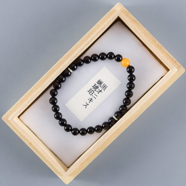 6mm 黒オニキス 蝋琥珀 ブレスレット 腕輪 数珠 京都 天然石 UDA228