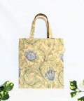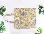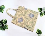 ウィリアムモリスのアネモネ柄ベージュ地にブルーの大きな花柄、綿シーチングのペタンコなトートバックです。
