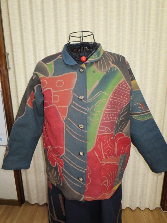 古布幟旗を柿渋染めしてジャケットにしました
