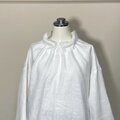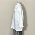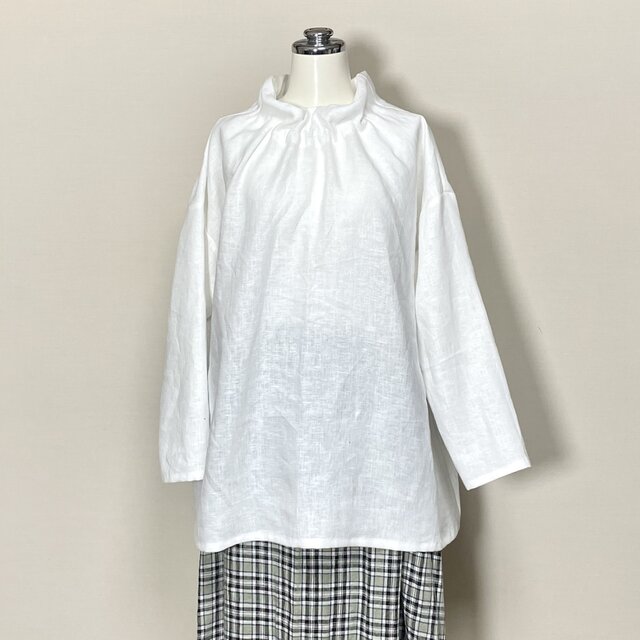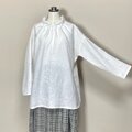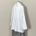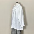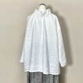 カラーリネン◆フラワーネックブラウス 長袖◆オフホワイト◆フリーサイズ(中厚、リネン100%)
