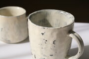 白壁がはがれて風化したみたいな縦長マグ。