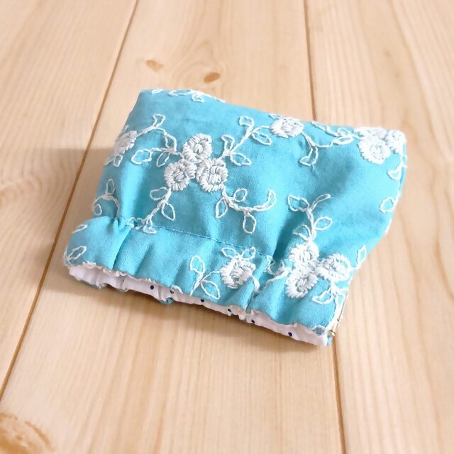 刺繍生地を使用して製作した、小さめのバネ口ポーチです。