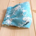 薔薇とツタがモチーフの刺繍生地で、主観ですが、水色とターコイズブルーの中間のようなカラーで、とても綺麗な色です。