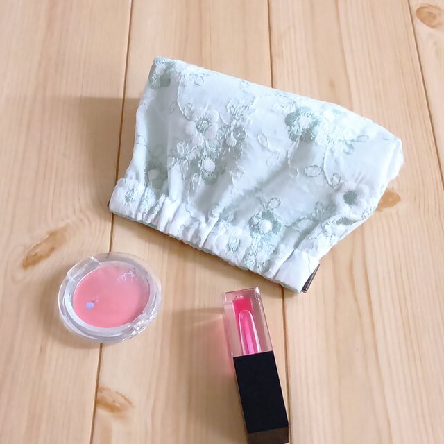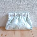 刺繍生地を使用して製作した、小さめのバネ口ポーチです。