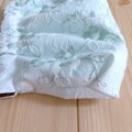 白地に、グリーン系の糸で刺繍された清潔感ある生地です。