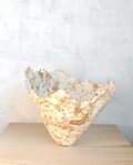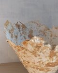 役目を終えて枯れ落ちたパキラの葉を刻んだものと、飲料の紙パックから作ったパルプで、ペーパーマシェの手法で作製したボウルです。
