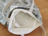 裏布を付け、レース地のスマホサイズのポケットをつけています。