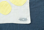 定番のCOCOCOCO Organic Cotton3重ガーゼハンカチサイズに、爽やかなレモングラス染めの○○を付けました。○の部分は6重ガーゼになり更にふかふか。