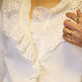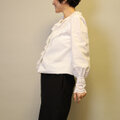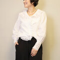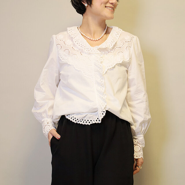 綿レースをたっぷり使って仕上げたVネックブラウスです
