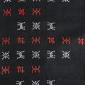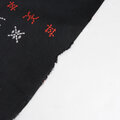昭和後期 ジャパンヴィンテージ 木綿地 刺繍文様の古布(反物状)|黒地に赤白のモダン柄