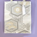 白地にゴールドとシルバーの織り糸がふんだんに使われ、豪華な雰囲気がございます