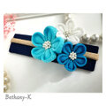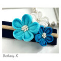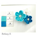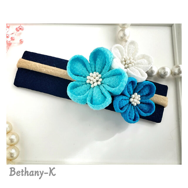 お食い初めや初節句に◆小花が可愛い和モダン髪飾り(下がり無し)◆白×空×海色のママでも簡単につけられるつまみ細工