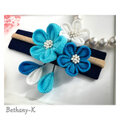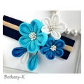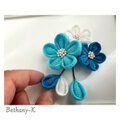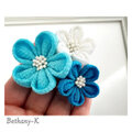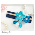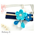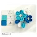 お食い初めや初節句に◆小花が可愛い和モダン髪飾り(下がり付き)◆白×空×海色のママでも簡単につけられるつまみ細工