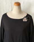 茎にはワイヤーが入っているため柔らかく曲げやすく、黒いお洋服につけた感じのように曲げてアレンジすることもできます。