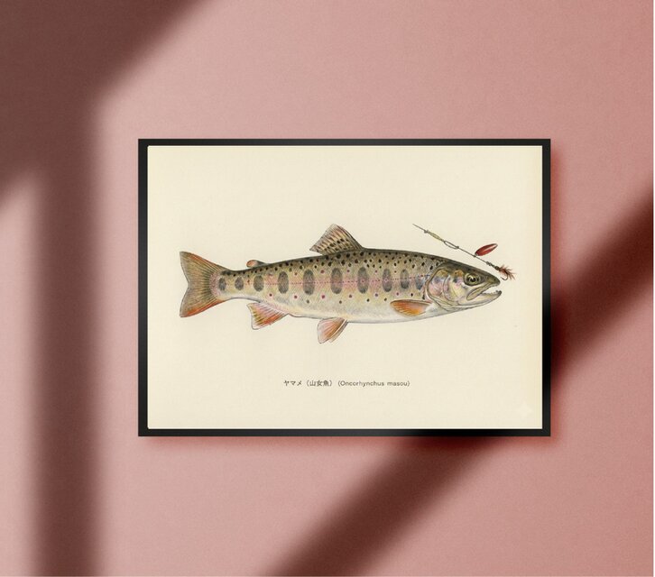 ヤマメ 山女魚トラウト サクラマス ビンテージ ルアーフィッシング 釣り アウトドア ガレージ 雑貨 A4アートポスター