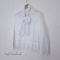 2WAYボータイ 裾ケミカルレースのコットンブラウス(卒業式・卒園式・入学式・フォーマル・結婚式・オケージョンにも)